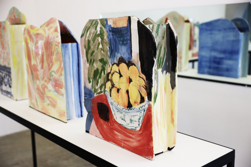 Vaisselles, vases, tabourets… François Bauer s’exprime sur des objets dont la valeur d’usage initiale est détournée, suggérant « une réflexion sur l’objet dans sa construction ».