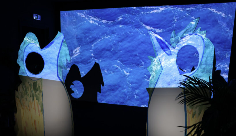 Dans la pénombre de la pièce, on découvre une vidéo de Christiane Fath, ressac de vagues captées dans les mers du monde entier. François Bauer a installé des passe-têtes devant cet écran géant, pour suggérer la « temporalité du tourisme » qui permet à tout le monde de devenir « quelque chose d’autre ».