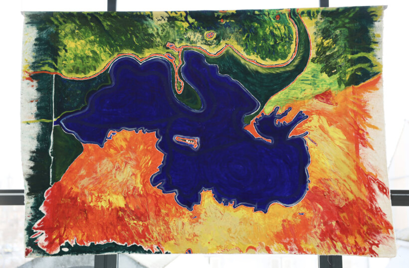 Une toile de Christiane Fath évoquant la Méditerranée. Photo DB