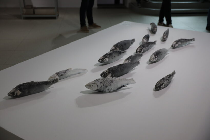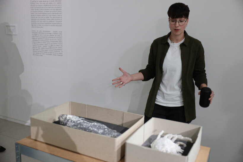 « La cristallisation c’est soit conserver l’éphémère, soit dégrader le temps », argumente Elise Grenois qui utilise la technique de la cire perdue pour fondre ses pièces, laissant apparaître dans le verre les traces cendrées de la combustion des caracasses.