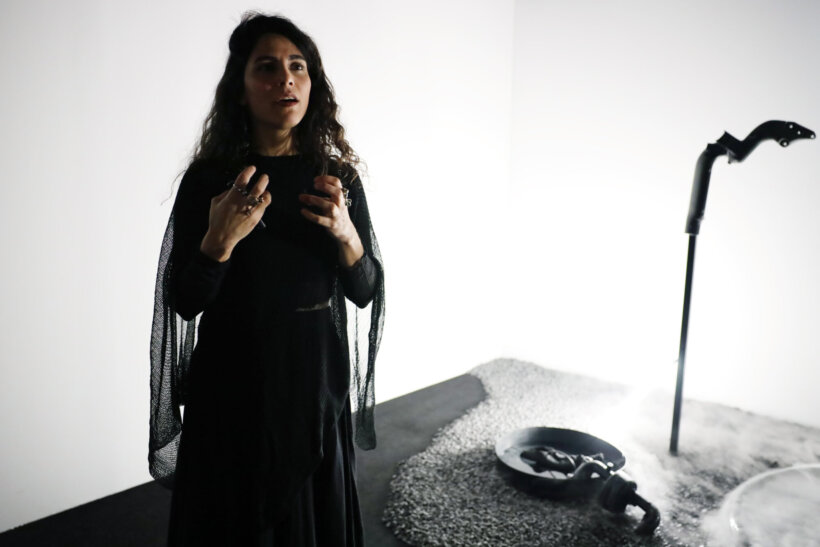 Lilith, installation sculpturale et sonore figure une sorte de « corps-paysage-fontaine » animé par un flux liquide, tel le lait ou les liquides corporels.