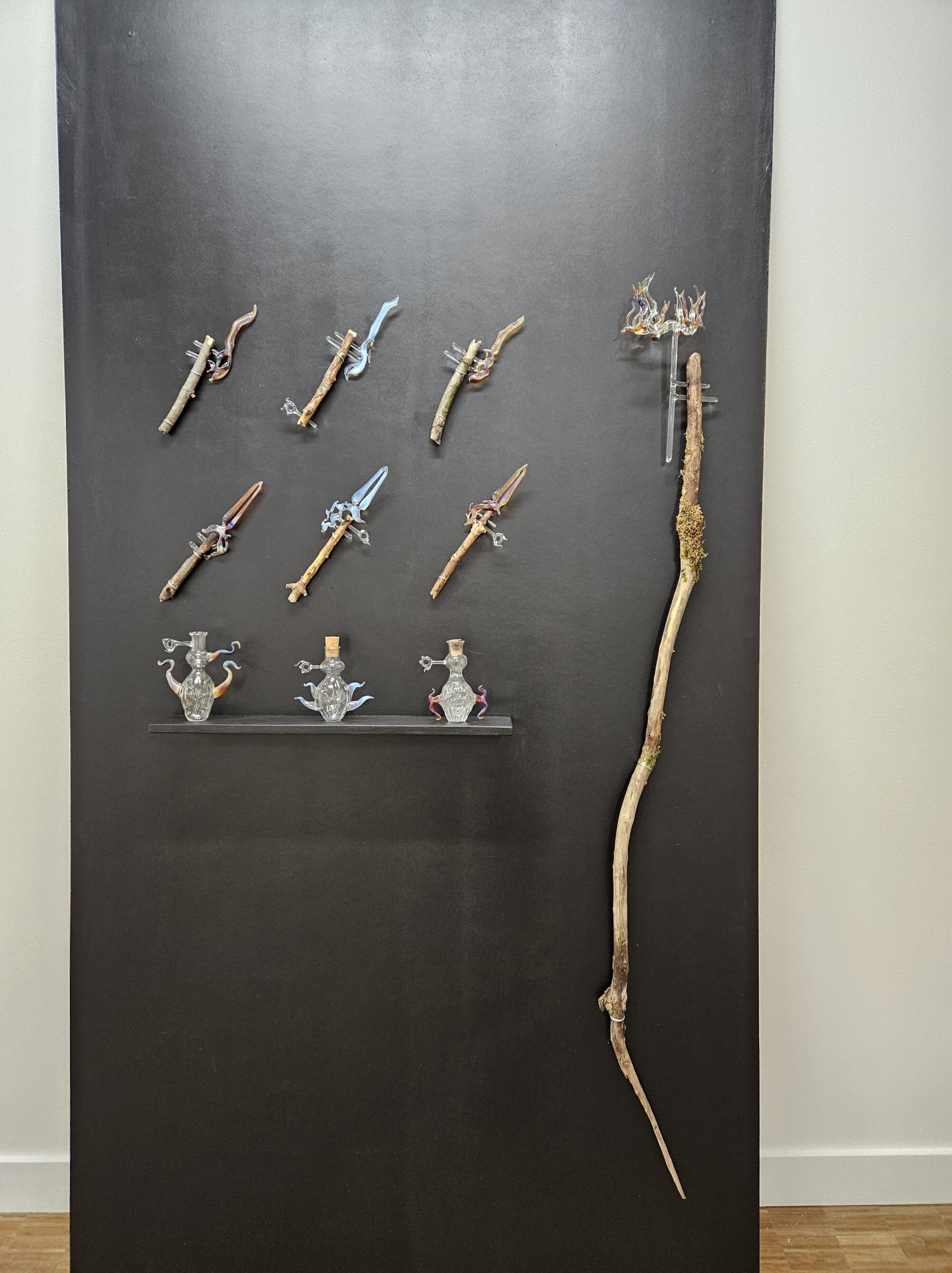 Ce dernier a récupéré les treize outils de son grand-père menuisier fixant son propos sur leur nom souvent associé au monde animal (araignée, rabot, spatule). Il a créé des illustrations sur des chutes de carton pour signifier ce lien entre l’objet utile et l’animal qu’il incarne. Il a complété l’installation par une vidéo batpisée « la conférence des instruments savants ».