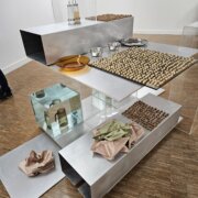 Si la Regionale témoigne de « pratiques inscrites sur un territoire », comme le rappelle Sandrine Wyman, directrice de la Kunsthalle, l’exposition imaginée par la commissaire invitée a voulu interroger la manière dont les artistes d’aujourd’hui se saisissent des matériaux de la vie quotidienne et de ce qu’ils collectent dans leur environnement en contrepoint des objets proposés par notre société capitaliste et consumériste.