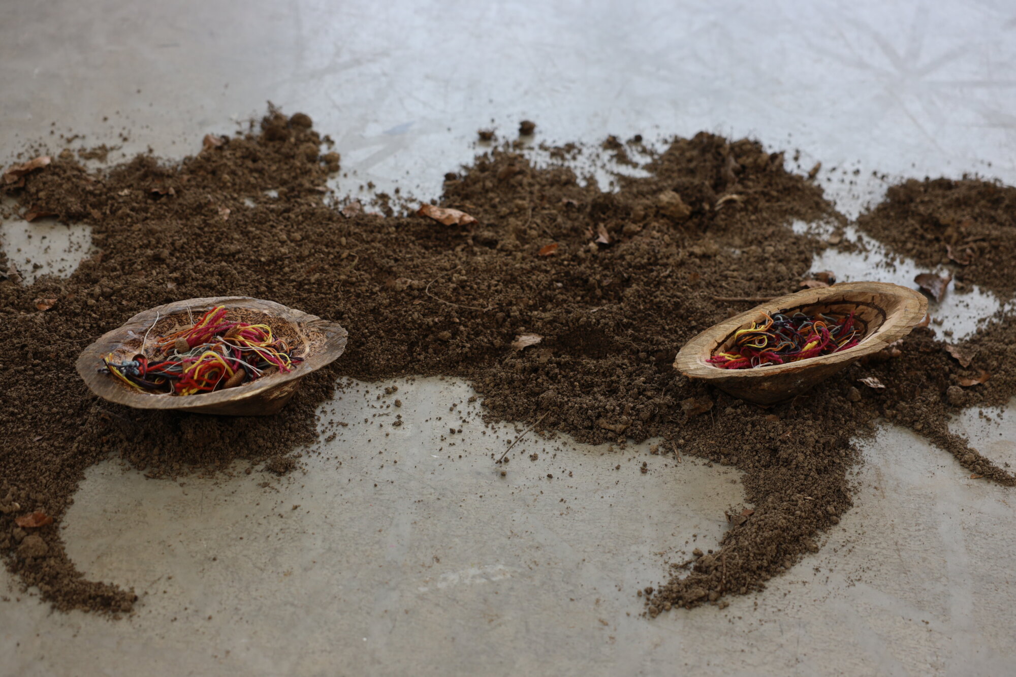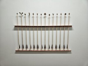 Les artistes interrogent les matières végétales, les rebuts, les outils qui racontent des gestes comme dans l’installation imaginée par Arthur Debert.