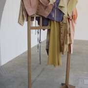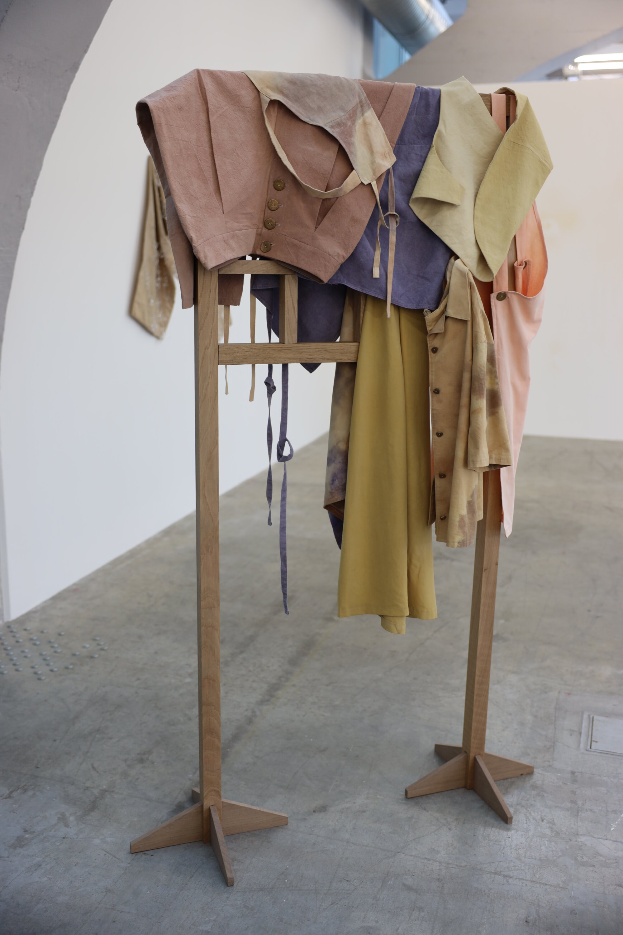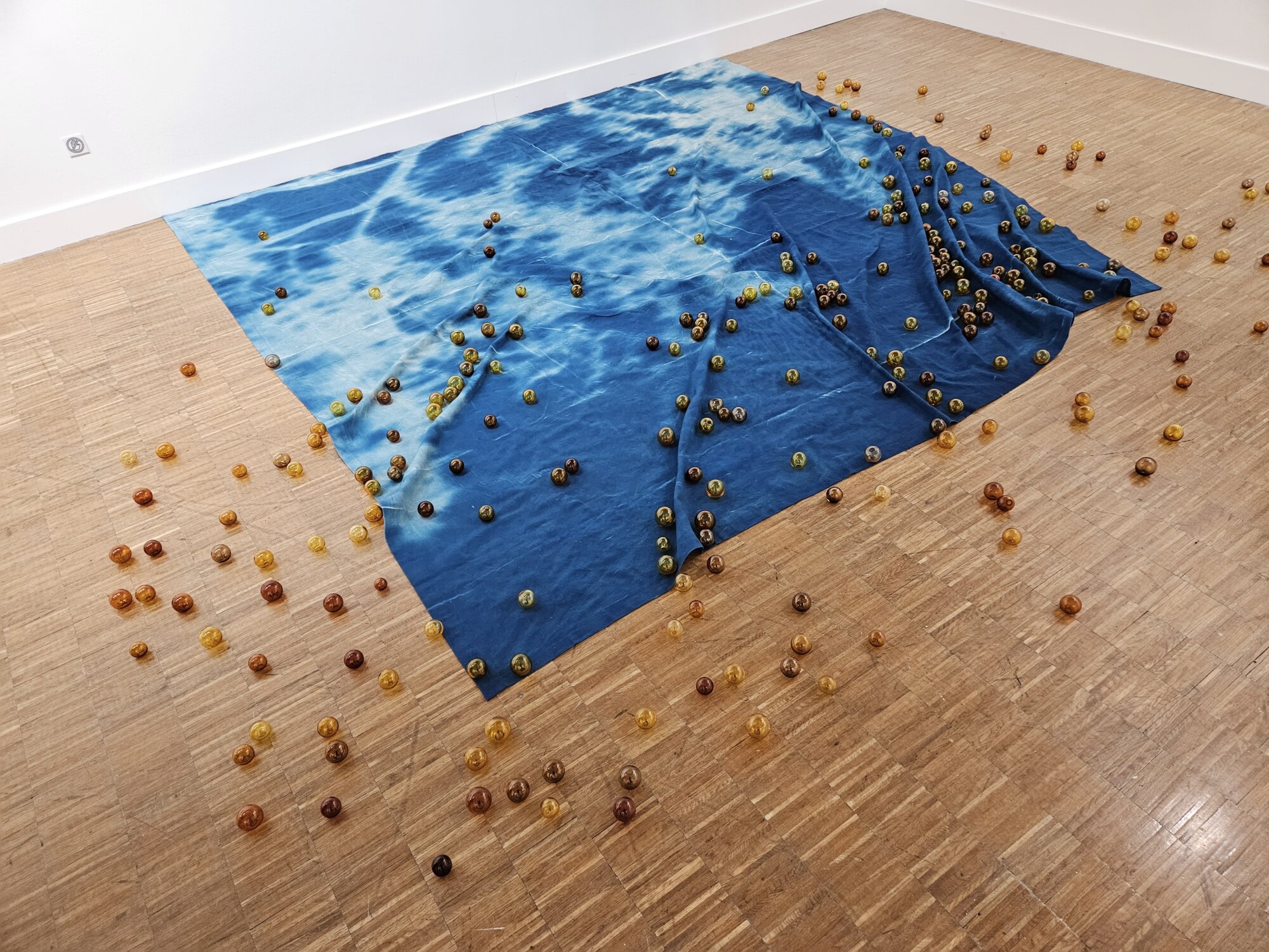 Boglàrta Balassa investit les éléments organiques pour en faire des teintures végétales qui imprègnent une surface textile et laisse la forme ainsi créée à sa transformation naturelle.