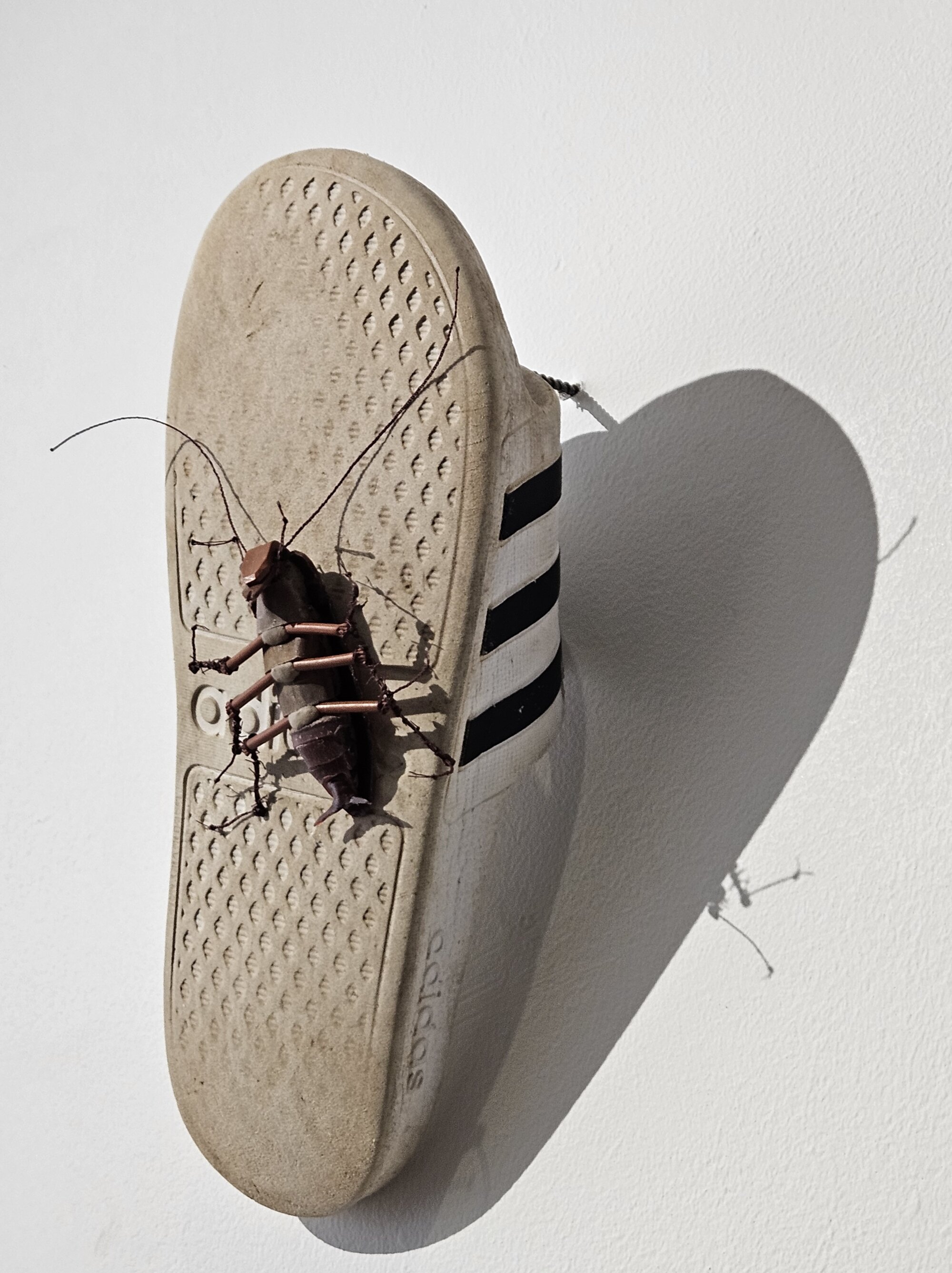 Les rebuts et déchets de matériaux collectés par Yoshikazu Goulven Le Maître, lui servent à la recréation par assemblage, pliage, couture, d’oiseaux, de diverses espèces en référence à la menace sur la biodiversité. Une manière de « réparer » ou de « réenchanter » le monde…